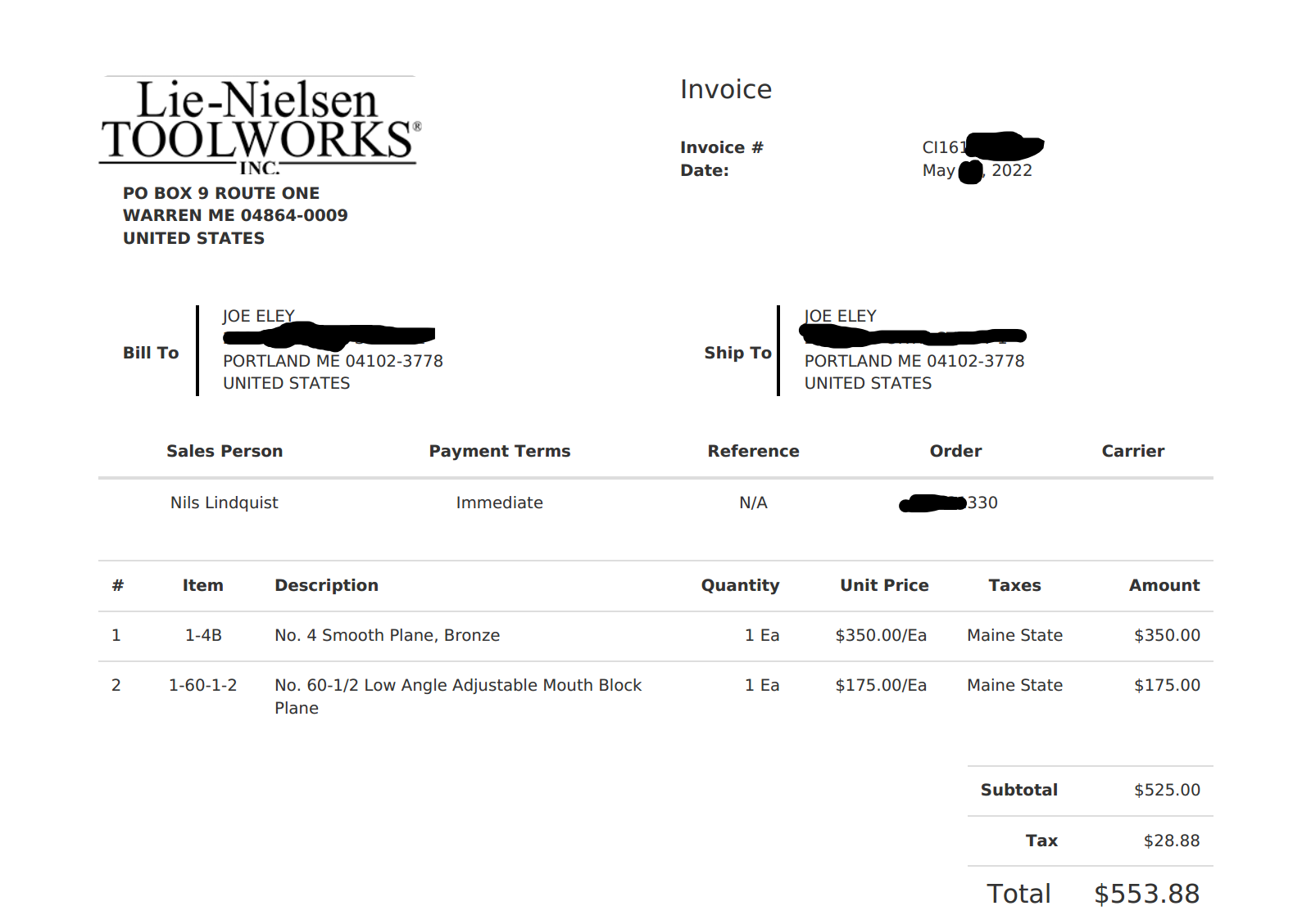 At the time I was lucky enough to live about an hour and a half from Lie-Nielsen Toolworks, and I had visited their store several times. Not a lot of woodworkers get to say that.