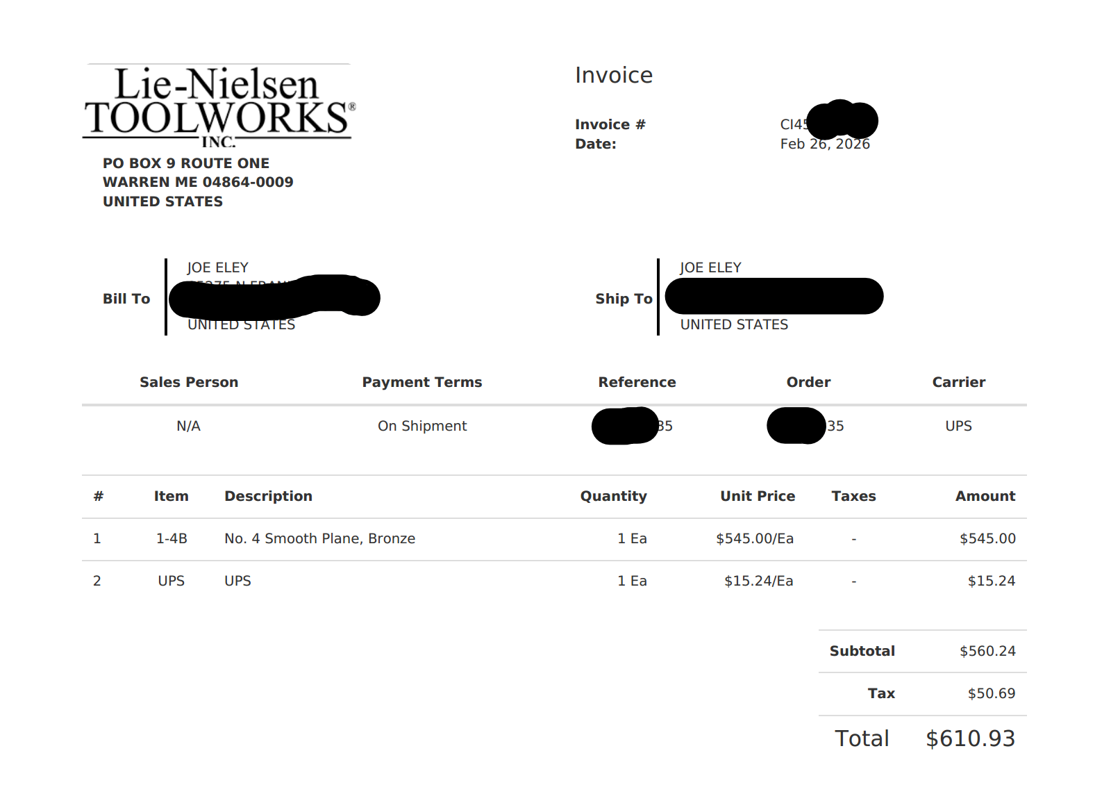 Recently I ordered a Lie-Nielsen Bronze No. 4 smoothing plane, and this post is really just a short note about it.